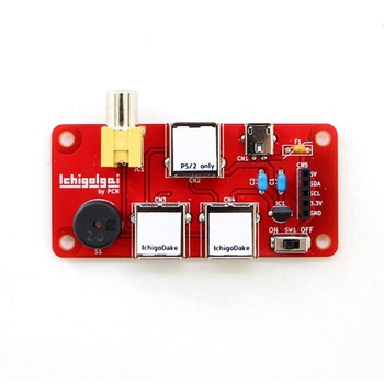 IchigoDakeに接続する周辺機能搭載ボードの組み立てキットIchigoIgaiはIchigoDakeと組み合わせることで、プログラミングを楽しむことができます。PS/2対応キーボード、ビデオ入力端子がついたテレビ、microUSBケーブルなどを接続して使用します。