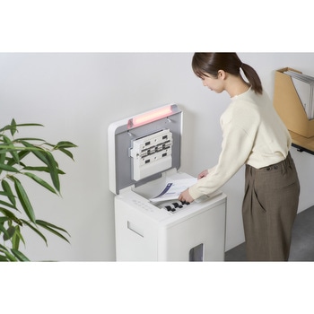 図書館と同じレベルの静かさ約45dB(空転時37dB)の静音オートフィードシュレッダーです。