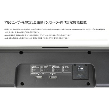 PSB-2はHDMIとBluetoothのデジタルソース入力を備えたサウンドバーです。テレビ視聴の満足度を格段に高めながらも、隣の部屋などへの音の伝達を最小限に抑えます。設置、接続、設定も極めて簡単で、ホテルの客室、会議室、教室のテレビや、展示会、店舗、待合室などのデジタル・サイネージ用に最適です。