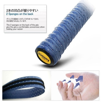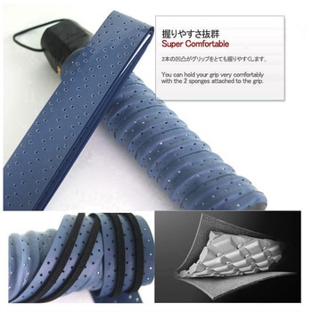 孔あき・ウェット、裏面のスポンジが2本のツインタイプ。・2本の凹凸が握りやすいグリップの裏面にスポンジが2本ついており、凹凸感を生み出しています。 ・グリップチェンジも気にならない両面対照的にスポンジが貼られているので、グリップチェンジが気にならず、同感覚で握れます。・ 握りやすさ抜群2本の凹凸がグリップをとても握りやすくします。