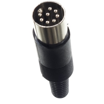 DIN規格対応の8ピンプラグです。本体部分は取り外せますので外してはんだづけしてお使いください。