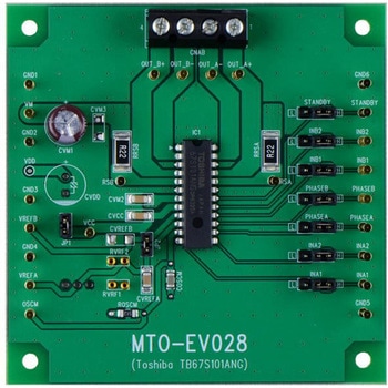 本評価ボードではIC評価をするための部品を実装しており、PWM定電流駆動にて、2相、1-2相、W1-2相の各励磁駆動をすぐ試すことができます。