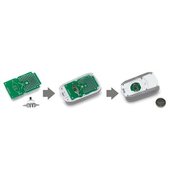 WCシリーズに実装できる専用の基板です。試作や小ロット製作の際にご利用下さい。材質はガラスエポキシ(FR-4)で両面スルーホール、2.54mmピッチの基板です。WCシリーズに付属している電池端子を差し込むための穴があります。端子の向きを正しくセットするためのシルク印刷付です。