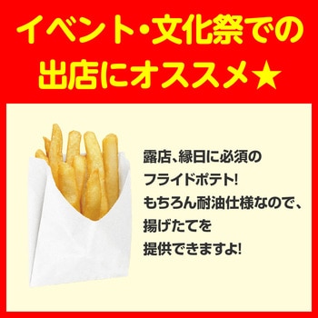 フライドポテト、コロッケやメンチカツなどの揚げ物、ホットスナックなどのお惣菜を入れるのに最適な商品です。ご家庭や店舗はもちろん、イベント、文化祭、学園祭などに活躍します。