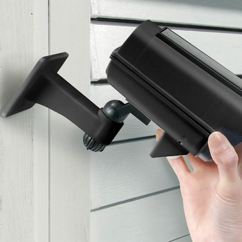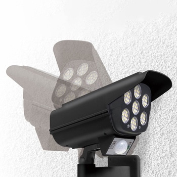 空き巣・万引き・不審者対策に!赤いランプの常時点滅と人感センサーライトで不審者を威嚇・抑制できるダミーカメラ。取付用ネジとコンクリートアンカー、両面ナノテープが付属。配線不要で玄関・車庫・店舗など様々な場所に気軽に設置可能です。3種の点灯モードを変更可能なリモコン付き。