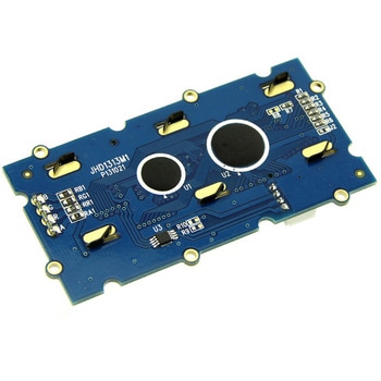GROVEシリーズの16文字2桁表示のLCDモジュールです。バックライトの色をコマンドで変えることができます。英語と日本語のキャラクターセットを備えています。I2Cインターフェースで接続はGROVE規格の4線ケーブル1本です。このケーブルは単に電源と2本のI2C信号線を組にしただけなのでGROVEやArduinoに関係なく汎用的に利用できます。