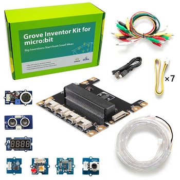 このキットには、micro:bitにGroveモジュールを取り付けるためのシールドと10個のGroveモジュールが入っています。GroveシールドとGroveモジュールを使えば、はんだ付けやジャンパを使用せずに様々な実験を行うことができます。このキットには、Groveモジュールを使った12種類のプロジェクトが用意されています。なお、Grove用のライブラリが無料で使用できます。