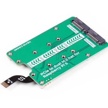 Raspberry Pi 5のPCIeコネクタに接続し、M.2対応デバイスを使用するための拡張ボードです。M.2コネクタを2個搭載し、NVMe SSDとHailo8/8L NPU AIアクセラレータを同時に使用することができます。PCIe Gen2×1に対応し、2230/2242/2260/2280のサイズのボードが使用できます。