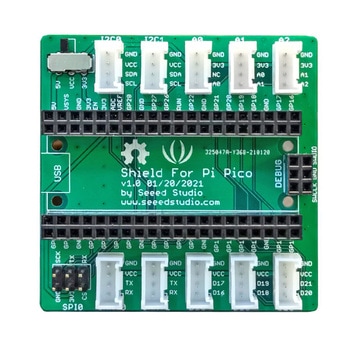 Raspberry Pi Pico用のプラグ&プレイシールドRaspberry Pi Picoの拡張用として、I2Cが2個、アナログ入力が3個、UARTが2個、デジタルポートが3個の計10個のGroveコネクタを搭載したシールドです。5V/3.3V切り替えスイッチ、SWD(Serial Wire Debug)用コネクタ、SPIピンなどを搭載しています。ジャンパーワイヤーやブレッドボードなしで、簡単かつ迅速にプロトタイプを構築することができます。