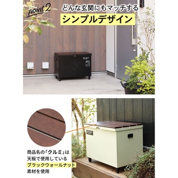 天板はブラックウォールナット(黒クルミ)天然木を使用しており、玄関先やお庭にもピッタリのおしゃれな商品です。しかも鋼板素材で、安定感があって耐久性も優れています。