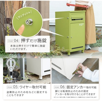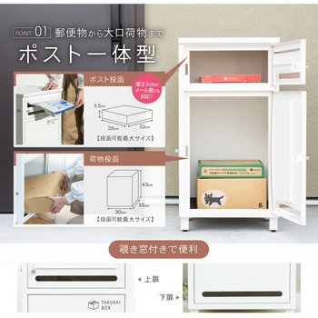 【郵便の受け取りも可能なポスト一体型】上部は広口のポストになっていてA4サイズより大きな回覧板、メール便なども受け取り可能!ポストのフタはマグネット付きで風などで開きにくくしています。