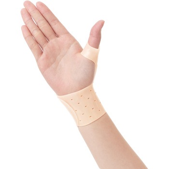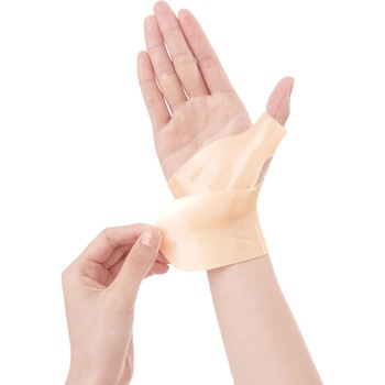 ピタッと強い粘着力でしっかり固定!水仕事も付けたままOK!親指までしっかり保護して日常動作をサポート!親指ホールと厚みのあるダブルホールド構造が親指の付け根から手首につながる関節をしっかり固定し、過度な動きを抑制し、負荷を軽減します。伸縮性に優れた薄くて軽いゲル素材で、曲げ伸ばしやすく、手指を動かしてもズレにくい。通気口があり、ムレにくい設計です。肌になじみ目立ちにくく、快適なつけ心地です。
