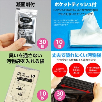 防災からアウトドアまで、水にも強い頼れる簡易トイレ!水に強い新素材のプラスチックダンボールを使用した、簡易トイレです。軽量で持ち運びがしやすく、設置や使い方も簡単で、緊急時にも安心して利用できます。耐荷重350kgで大人でも安心して使用できます。コンパクトなので保管も簡単。軽量で丈夫な本体に、使用回数30回分のトイレ袋・凝固剤・ポケットティッシュが付属しており、非常時でも衛生的かつ安心して使用できます。防災用品としてはもちろん、アウトドアやレジャーにもおすすめです。