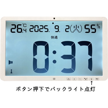 電波時計・温湿度計・タイマーの3モードを本体ボタンかリモコンで切替可能です。バックライトボタン押下で3秒間点灯します。