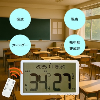 すべてのモードで熱中症リスクが高くなり暑さ指数の参考値が28℃以上(厳重警戒)になると警報音が鳴動します。液晶画面には「危険」「厳重警戒」「警戒」「快適」「インフルエンザ注意」の文言が点灯または点滅します。電池残量が減ってくると残量不足を警告表示します。