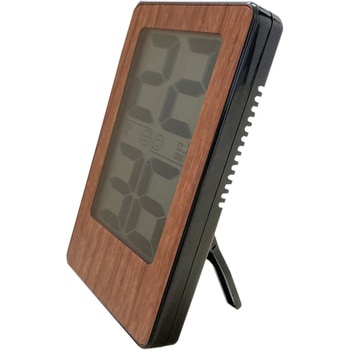 木目調にデザインされたデジタル温湿度計です。壁掛け、もしくは、背面スタンドで自立します。快適温度(18~28℃)、快適湿度(45~65%)の時、にっこり顔マークを表示します。お部屋の環境管理にご利用ください。