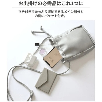 お出掛けをシンプルにころんとしたフォルムが可愛いスマホショルダー口をギュッと絞れる巾着型のデザインが可愛いスマホショルダー。しっかりしたマチがあり、スマホの他にもAirPodsやミニウォレット、コスメなど普段使うものを一緒に持ち歩けて、ちょっとしたお出かけにちょうどいいサイズです。ファッションのアクセントになるころんとしたデザイン2つに分かれた収納(マチ付きメインポケット×1、インナーポケット×1)ショルダーベルトは紐の結び目をずらせば長さ調整が可能