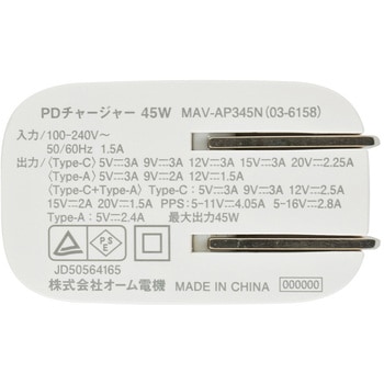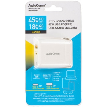 ノートパソコンにも使える45W USB PD(PPS)、USB-Aも18W QC3.0対応