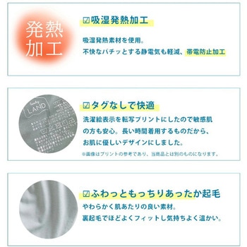 ふわっともっちりあたたか起毛。吸湿発熱機能。ぱちぱちしにくい帯電防止機能。起毛なのにのびのびストレッチ