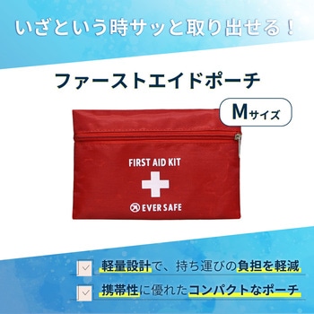 軽量でマチもなく、コンパクトに納まるファーストエイドポーチ。バッグの中でもよく目立つ、視認性に優れたポーチです。