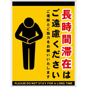 ●長時間滞在ご遠慮サインは、マナー向上のために注意を促すための標識です。●2か国語での表記の為、インバウンドのお客様へもご理解をして頂きやすいです。