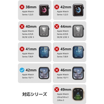 セット内容フルカバーフィルム(衝撃吸収・傷リペア・指紋防止タイプ)×2、クリーニングクロス(乾式)×1、ホコリ取りシール×1、ヘラ×1、貼り付けツール×1材質接着面対応機種Apple Watch Series 11/Apple Watch Series 10 [42mm]内容量1個
