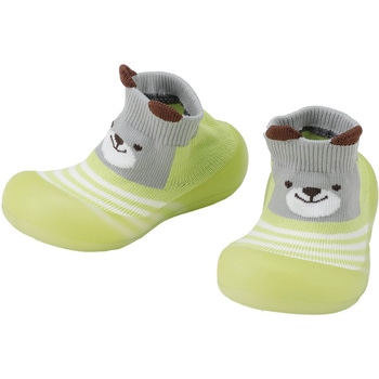 足元を優しく包み込むソックス素材と、しっかり滑り止め効果のあるラバーソールを組み合わせたベビーシューズです。歩き始めたばかりの赤ちゃんの足を安全にサポートします。靴下のように伸びる素材でフィット感が高く、着脱がスムーズです。丈夫なゴム底で水を通さず、雨の日や水遊びのシーンでも安心。履き替えたり、足を拭いたりといった手間もかかりません。室内・屋外どちらでも使える便利なファーストシューズです。災害時の避難や非常時にも役立つ、家庭や保育施設におすすめの一足です。