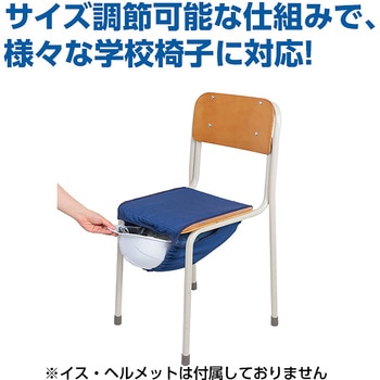 学校の防災対策に!椅子下にすっきり収まるヘルメット用収納ケース!椅子に取り付けるタイプのヘルメット収納ケースです。サイズ調節機能付きで、奥行33~40cmの椅子に対応しています。すべり止め加工が施されており、ずれる心配もなく安心して保管できます。椅子の下に設置することで収納スペースを有効活用。災害時にすぐ取り出せるため、学校や教育施設の防災対策としておすすめです。