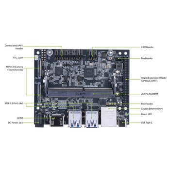 その他【RTC】RTC ×1、2ピン RTCソケット(CR1220/ML1220対応、バッテリー非内蔵) ×1寸法(mm)100×80電圧9~19V温度範囲(℃)-10~+60インターフェースHDMI 2.1 ×1、ギガビットイーサネット (10/100/1000M) ×1、USB 3.2 Type-A (10Gbps) ×4、USB2.0 Type-C (Device Mode) ×1、M.2 Key M(2280 NVMe SSD対応) ×1、M.2 Key E(2230 WiFi/Bluetooth対応) ×1、CAN ×1ファン4ピンファン用コネクタ(5V PWM) ×1RoHS指令(10物質対応)対応ポート【マルチファンクションポート】40ピン拡張ヘッダー ×1、12ピン制御&UARTヘッダー ×1カメラ仕様CSI(2レーン 15ピン ×2)内容量1個