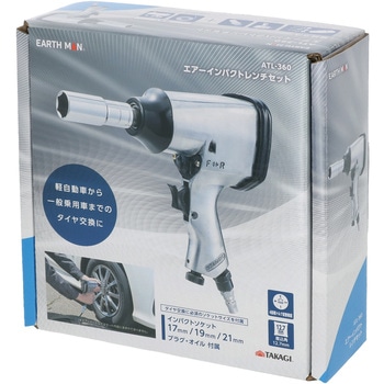 用途軽自動車から一般乗用車までのタイヤ交換や各種整備等に付属品エアーインパクトレンチ本体 ×1 / インパクトソケット(17mm・19mm・21mm) ×各1 / プラグ ×1 / シールテープ ×1 / エアーツール用オイル ×1 / 取扱説明書 ×1質量(kg)2.2寸法(長さL×幅W×高さH)(mm)180×71×205無負荷回転数(min-1[r.p.m])約5500(※0.63MPaで使用した場合)空気消費量(L/min)140空気接続口G1/4使用圧力(MPa[kgf/cm2])約0.63(6.4)ソケット差込角(mm)12.7能力ボルト径(mm)M16(対辺24)最大トルク(Nm[kgf-cm])1:約210(約2141) 2:約250(約2549) 3:約310(約3161) 4:約360(約3670)(※0.63MPaで使用した場合(動圧))内容量1個