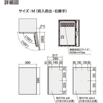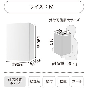 ・エントランスのデザインや、用途に合わせられる、豊富なバリエーション:居住者、配達業者の生活動線や、スペースに合わせて、左右勝手が選べます。壁埋込、壁付、据置、ポールの4つの設置バリエーションに対応しています。