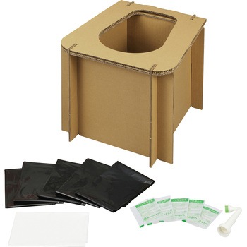 ●段ボール製仮設トイレ×1台 ●抗菌消臭処理袋×1枚 ●抗菌消臭トイレ用袋×5枚 ●簡易洗浄ノズル×1個 ●抗菌消臭凝固剤×5個