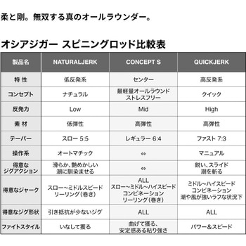 さらなるストレスフリーを宿命として、ジギングの絶対的基本性能”ジャーク”の進化を遂げた「オシアジガー コンセプトS」。本質であるブランクスは細身軽量を継承し、レスポンスとパワーを高めながらも曲がりの支点がスムーズに移行するバランスを実現しました。ロッド全身がムチのようにしなり、より少ない力でジグを高効率に操ることができ、アングラーの疲労やストレスを低減。また徹底的にブレも抑制し、さまざまな変化を手元で感知しやすく、ジャークのタイミングや潮の抵抗などを的確に把握でき、正確かつ上質なキープジャークをサポートします。王道のワンピッチジャークを基軸に、スローからハイ、コンビネーションなど幅広いジグアクションやスピードを巧みにコントロールできる、シマノジギングロッドの中核的存在です。