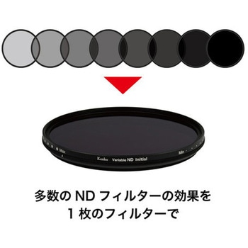 バリアブルND Initialは、前枠を回転することで減光量を調整できる可変NDフィルターです。ND3~ND450相当*の濃度を1枚でカバーします。一眼動画撮影で露出オーバーを防ぐのに欠かせないフィルターで、静止画でのスローシャッター撮影にもお使いいただけます。*焦点距離70mm以上で使用の場合にND450相当までお使いいただけます。濃度をMaxに近づけた時に映像にX状のムラを生じることがあります。使用するレンズの焦点距離が短いほどこの現象は起こりやすくなります。