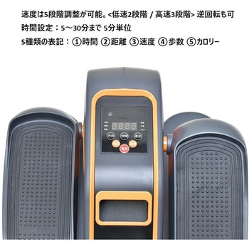 自分にあったスピードで、転倒の危険なく、家の中で下股の運動が行えます。足首・ひざ・ふくらはぎといった部位を動かす事により、筋肉の拘縮・萎縮予防に繋がります。歩きたくても歩くことが難しいという方々、最近運動不足が気になる方々も含め、足を乗せるだけで足首・ひざ・股関節を柔らかくストレッチすることができます。速度は5段階調整が可能。<低速2段階 / 高速3段階> 逆回転も可。時間設定:5~30分まで 5分単位5種類の表記:1時間 2距離 3速度 4歩数 5カロリー