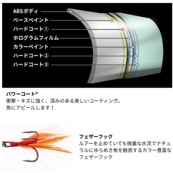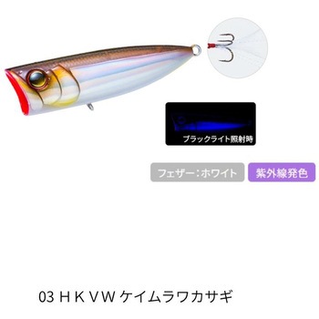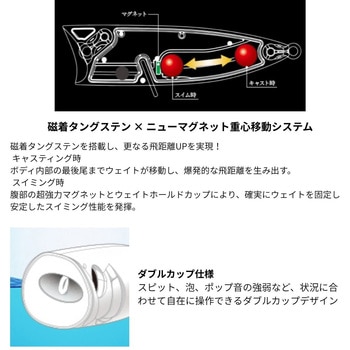 水面炸裂!強アピールレベルフローティングポッパー!最先端技術と心を奪われる美しい仕上げ更に進化した究極のハードコア水面をうまく使いバスに見切られにくいレベルフローティング仕様スピット、泡、ポップ音の強弱など、状況に合わせて自在に操作できるダブルカップデザインルアーを止めていても微量な水流でナチュラルにゆらめき魚を魅惑するカラー豊富なフェザーフック