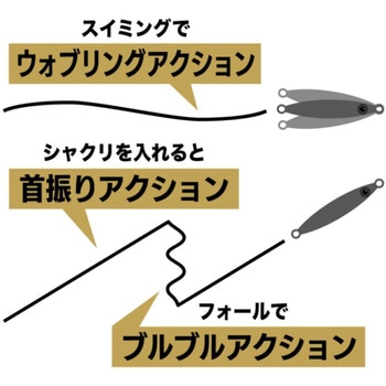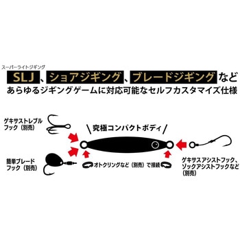コンセプトは、「徹底したコンパクトシルエット」。シンプルデザインですが若干リアに重心を配置することで、あらゆるアクションが可能に。フロントにアシストフックを装着するとSLJやライトジギングといったオフショアゲームからショアジギングまで活躍、ワンピッチで首振りアクションを演出、ロングフォールでは水平フォールで根魚狙いにもおすすめです。