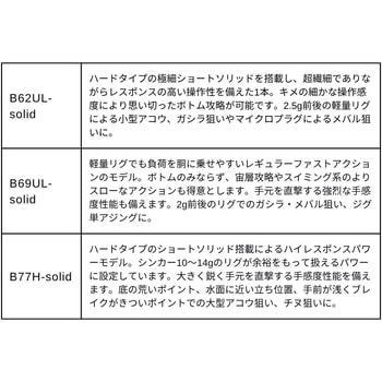ロックフィッシュ狙いにおいて、よりライトウェイトなリグでのアプローチを快適に実践するため、より緻密でフィネスな操作性と高い感度性能を追求し生まれたベイトモデルのシリーズ。軽量高弾性ブランクとハードタイプのソリッドを組み合わせ、オリジナルカーボンパイプ型リールシートを中空機構でマウント。他パーツ類も最小限に抑え徹底的に軽量化を施しました。結果、細かな荷重変化察知能力とクリアで高い感度性能による圧倒的な情報収集能力を獲得。スタックを回避しながらの繊細なリグ操作を可能にしています。ガイドには軽量のチタントルザイトリングガイドをスパイラルに設定し、ガイド個数を最適化することで快適な釣りをサポートします。ライトライン/ライトウェイトリグを駆使し緻密な駆け引きを楽しむスリリングでエキサイティングなゲームを体感して下さい。