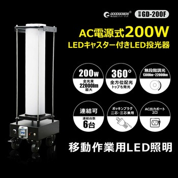 キャスター付き LED投光器 200W 6台まで連結可