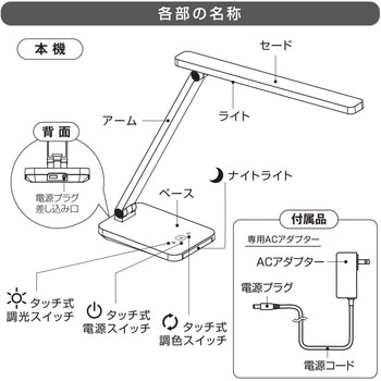 タッチ操作で4段階調光・3段階調色に対応したLEDデスクライトです。電球色・白色・昼光色の切り替えが可能で、学習・読書・PC作業などシーンに合わせて最適な明かりに調整できます。Ra95の高演色LEDを採用し、色を忠実に再現。ナイトライト機能を搭載し、就寝前の間接照明としても便利です。JIS A形基準に準拠した明るさで、長時間の作業でも快適に使用できます。