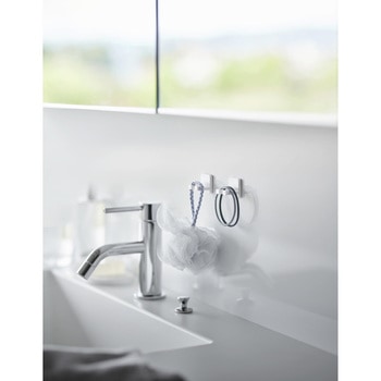 材質本体×2:ABS樹脂 フィルムフック×2:ポリカーボネート・PET・ポリウレタン色ホワイト質量(g)5備考使用できる面 光沢のある平らな油染みしない面で、フィルムフックの接着面よりも大きい面・タイル・プラスチック・ステンレス・ガラス・鏡面(ミラー)・金属塗装面・人工大理石 ※表面加工・材質・状態などによっては貼り付けできない場合があります。耐熱温度(℃)60寸法(幅W×奥行D×高さH)(cm)2.6×2.4×2.6(1つあたり・フィルムフック含まず)耐荷重(g)ホルダー1つあたり:100(静止荷重)内寸(cm)【ホルダー収納部】0.7×1.5内容量1個