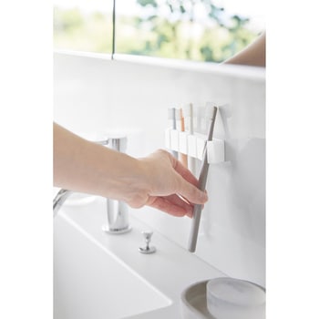 材質本体:シリコーンゴム フィルムフック:ポリカーボネート・PET・ポリウレタン色ホワイト質量(g)55備考使用できる面 光沢のある平らな油染みしない面で、フィルムフックの接着面よりも大きい面(タイル・プラスチック・ステンレス・ガラス・鏡面(ミラー)・金属塗装面・人工大理石) ※表面加工・材質・状態などによっては貼り付けできない場合があります。耐熱温度(℃)60寸法(幅W×奥行D×高さH)(cm)11.9×2×2.7(フィルムフック含まず)耐荷重(g)500(静止荷重)内寸(cm)【ホルダー部1つあたり】1.2×1.1(前面差し込み口:0.3)内容量1個
