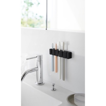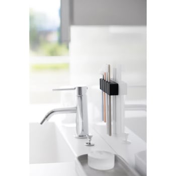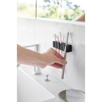 材質本体:シリコーンゴム フィルムフック:ポリカーボネート・PET・ポリウレタン色ブラック質量(g)55備考使用できる面 光沢のある平らな油染みしない面で、フィルムフックの接着面よりも大きい面(タイル・プラスチック・ステンレス・ガラス・鏡面(ミラー)・金属塗装面・人工大理石) ※表面加工・材質・状態などによっては貼り付けできない場合があります。耐熱温度(℃)60寸法(幅W×奥行D×高さH)(cm)11.9×2×2.7(フィルムフック含まず)耐荷重(g)500(静止荷重)内寸(cm)【ホルダー部1つあたり】1.2×1.1(前面差し込み口:0.3)内容量1個