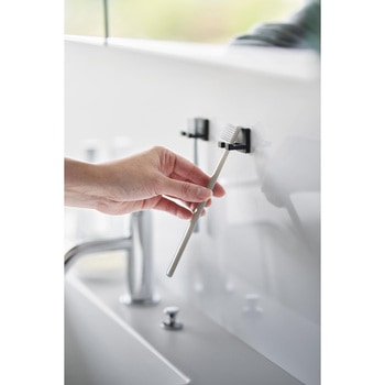 材質本体×2:ABS樹脂 フィルムフック×2:ポリカーボネート・PET・ポリウレタン色ブラック質量(g)5備考使用できる面 光沢のある平らな油染みしない面で、フィルムフックの接着面よりも大きい面・タイル・プラスチック・ステンレス・ガラス・鏡面(ミラー)・金属塗装面・人工大理石 ※表面加工・材質・状態などによっては貼り付けできない場合があります。耐熱温度(℃)60寸法(幅W×奥行D×高さH)(cm)2.6×2.4×2.6(1つあたり・フィルムフック含まず)耐荷重(g)ホルダー1つあたり:100(静止荷重)内寸(cm)【ホルダー収納部】0.7×1.5内容量1個
