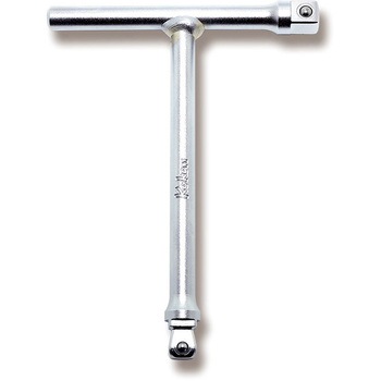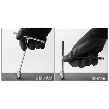 フレキシブルと固定の2段階の角ドライブに加え、ハンドルサイドにも角ドライブを備えたマルチなT型ハンドル。Tハンドルで早回し、ちょっと逃がしたいシーンでも力を加えたいシーンでも活躍できるコンパクトハンドル。