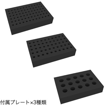 3種類の取り替え可能なプレートが付属されているため、様々な容量・サイズの遠心管・採血管に対応しています。