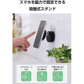 MagSafeで簡単に着脱できる、MAGKEEPシリーズのスマホスタンドです。付属のメタルプレートを使えば、非対応機種でも使用可能。吸盤式なので、壁や机など好きな場所に簡単に着脱でき、つまみを右にスライドするだけでしっかり固定。角度調整もでき、動画視聴やレシピ確認、ビデオ通話にも便利です。凹凸面対応のサポートシート付きで、設置場所も広がります。
