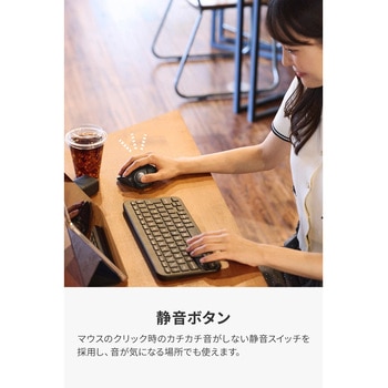 コンパクトでも機能は本格派!親指操作タイプの静音モバイルトラックボール”bitra”です。Bluetooth(R)接続と無線2.4GHz接続の切り替えスイッチを搭載し、2台のデバイスをスムーズに操作可能。自宅とオフィスなどの複数環境でもストレスなく作業できます。手のひらに収まる小型設計と収納ポーチ付きで、持ち運びに便利です。