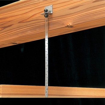 天井の吊木受け材と梁をつなぐ金物です。天井面の均一な仕上がりと、階下への防震効果が期待できます。〔防震吊木金物〕木材吊木のような割れや施工後の痩せによる天井面の波打ちの心配がありません。金物なので均一な耐荷重が見込めます。