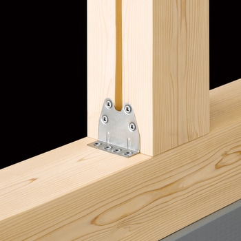 柱と土台、柱と横架材を接合する柱頭柱脚用金物です。板厚が薄く、最小設計された補強リブによりパネル仕様に最適です。また、背割り材でも柱の中央に取付けが可能です。補強リブが最小設計のため、パネル仕様の箇所でも枠材の欠き込み不要で金物の取付けが可能です。背割りのある柱でも、背割りを避けてビスが打ち込めます。金物の柱側の凹形状を木材の背割り部分に均等に合わせることにより、位置合わせを簡単に行うことができます。ステンレス製のため耐食性に優れています。